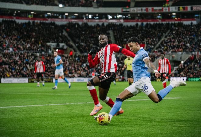 两队的上一次交手,曼城主场3-0大获全胜。不过本赛季在光明球场,黑猫军团还没有输过球。比赛开始后,曼城在第6分钟一度由B席完成破门,但因为越位被判无效。随后,多纳鲁马扑出了对手单刀力保球门不失。半场结束,两队0-0暂时互交白卷。